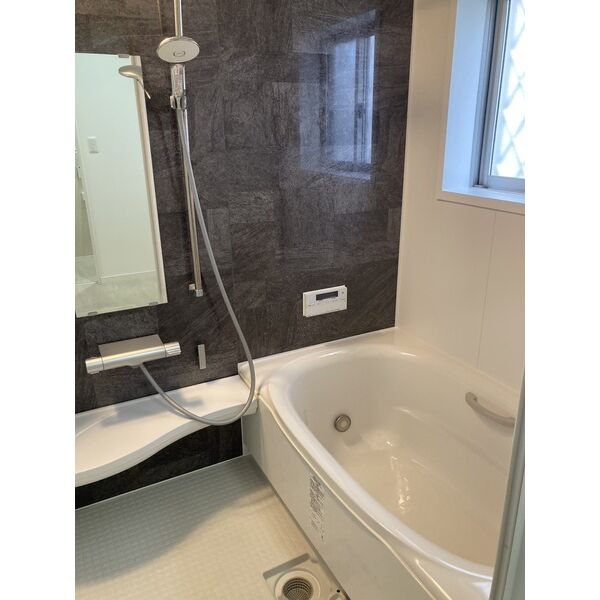 1階にはバス・トイレ別の浴室(追い焚き機能付き)・UT・WC・収納スペース・シューズボックスも配置されています。洗濯機置き場は室内にあるため、洗濯物の出し入れも天候を気にせず行えます。