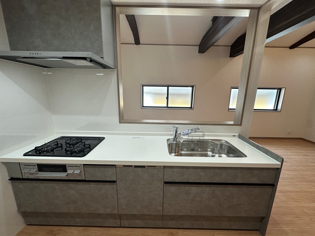 キッチンは対面式のカウンターキッチン(システムキッチン)を採用。料理をしながら家族とコミュニケーションが取れる、現代のライフスタイルに合った設計です。また、食器洗浄乾燥機も完備されており、忙しい共働き世帯や子育て中のご家庭にとって嬉しい装備です。