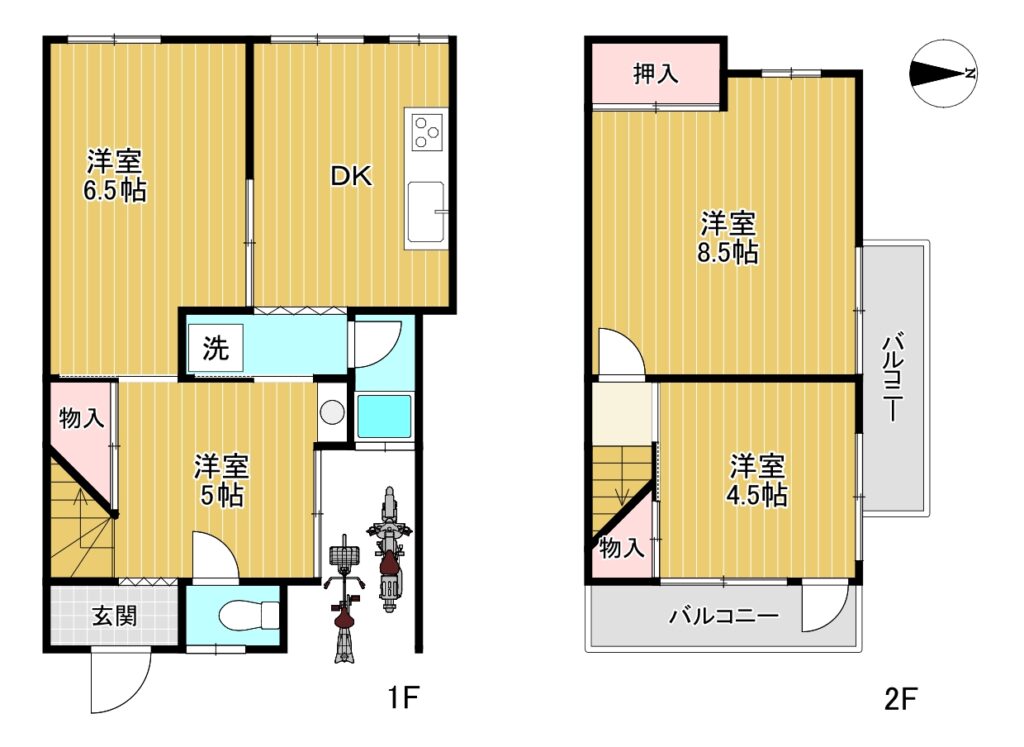 | 間取りタイプ | 4DK(DK5.0 × 洋6.5 × 洋5.0 × 洋8.5 × 洋4.5) |
