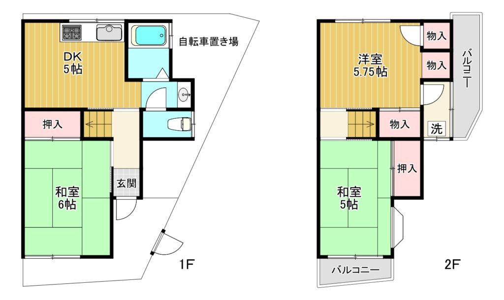 | 間取り | 3DK(DK約5帖、和室6帖、和室5帖、洋室5.75帖) |